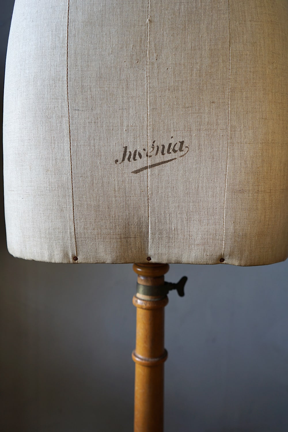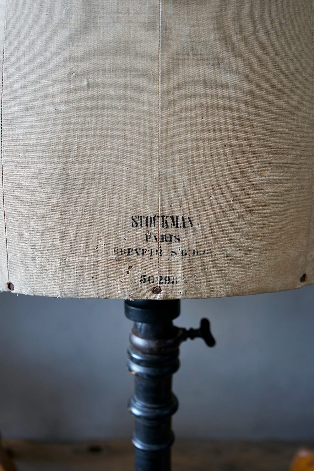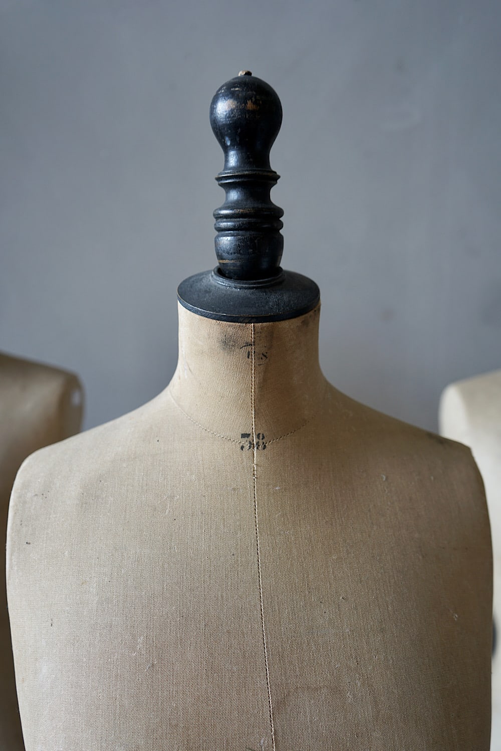 Three tailor’s dummies in good condition, all stamped with the Pairs maker’s marks. Linen covered busts on a beechwood bases, the centre one with original black ebonised finish.