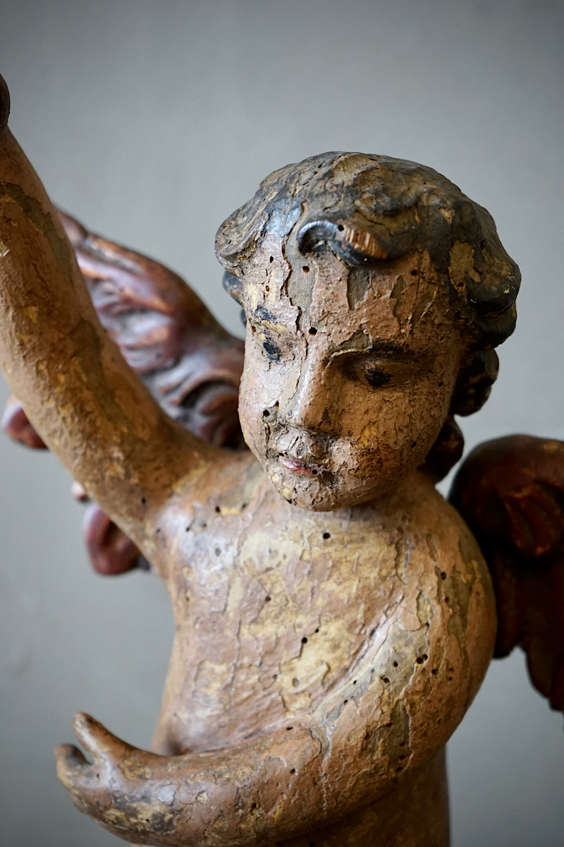 Not to be confused with 19th century pieces in this style, which are generally made of moulded plaster, not fully carved such as these.