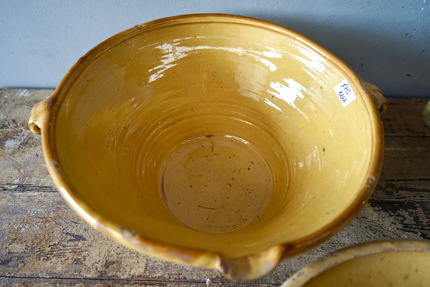 A collection of yellow glazed terracotta tian bowls from southwest France. Sold separately. Sizes & pricing as follows.