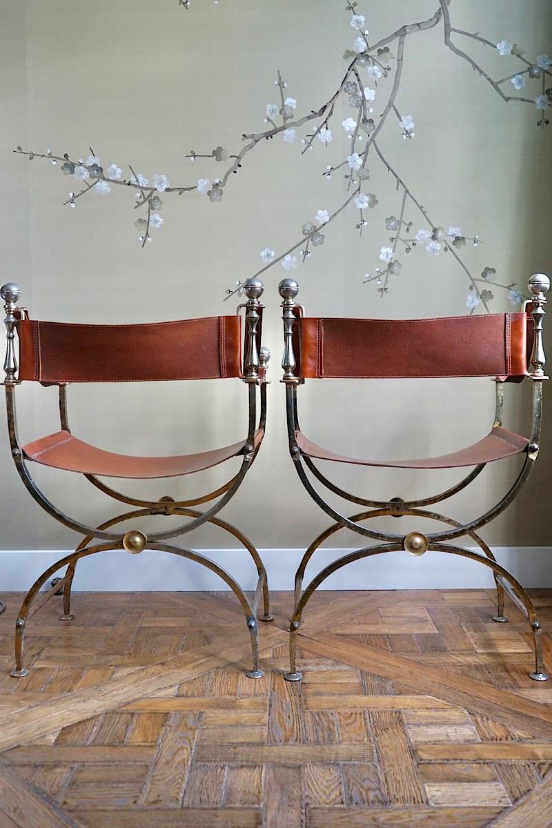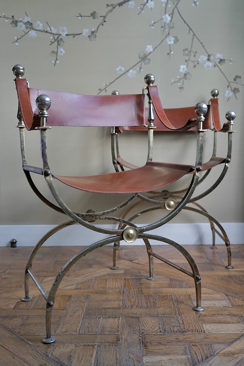 Iron & Leather Curule Chairs