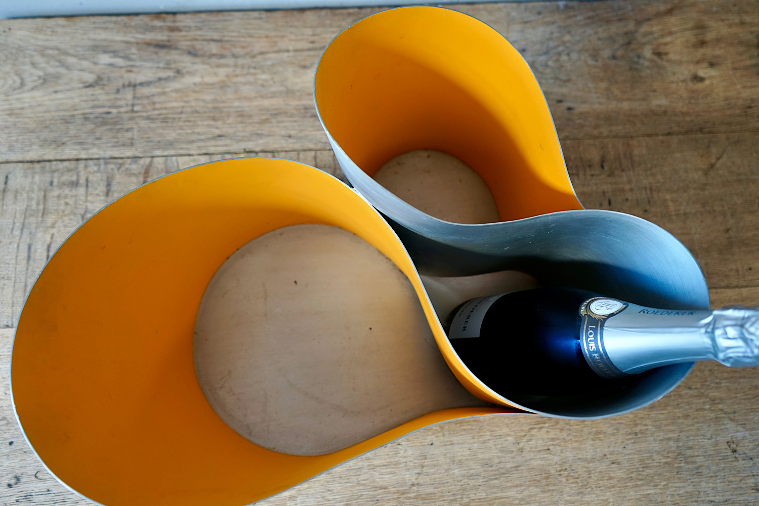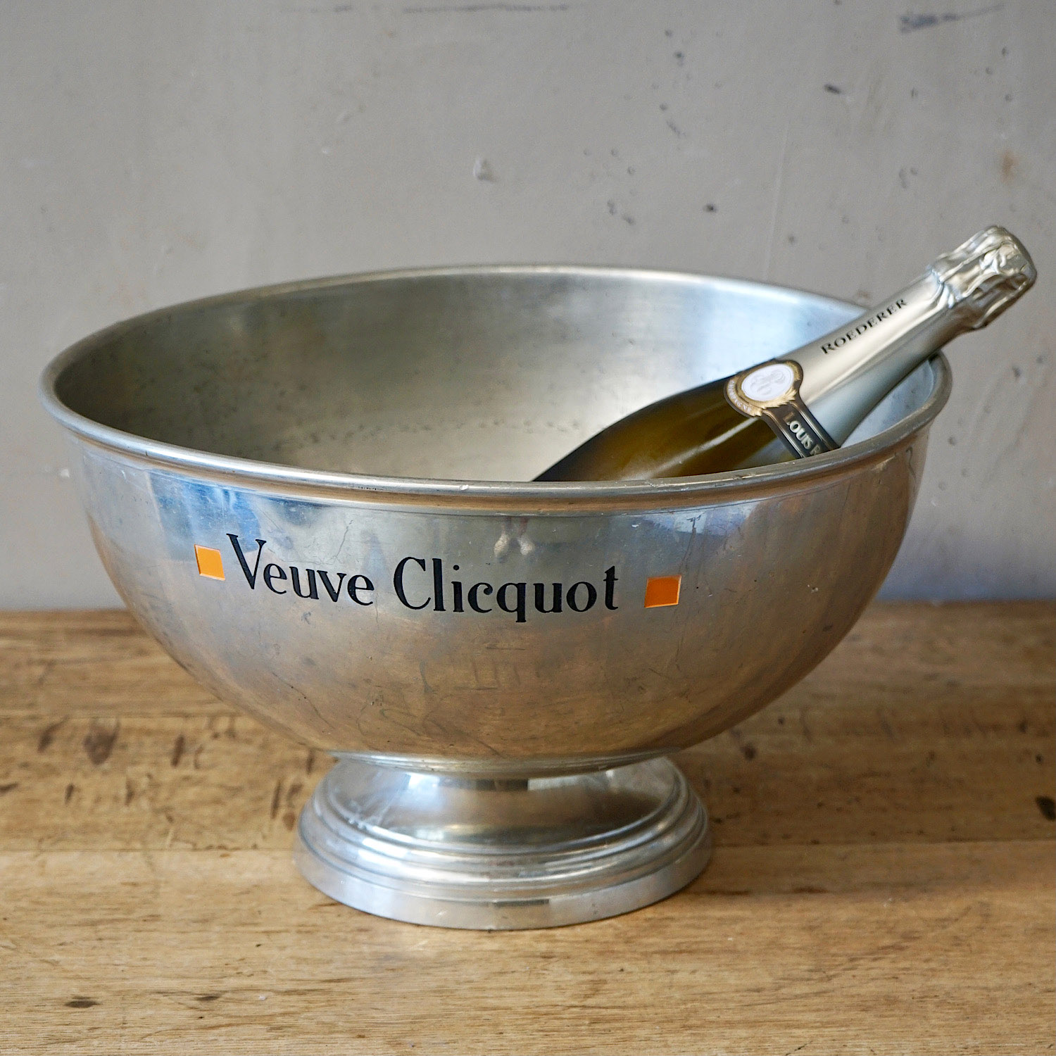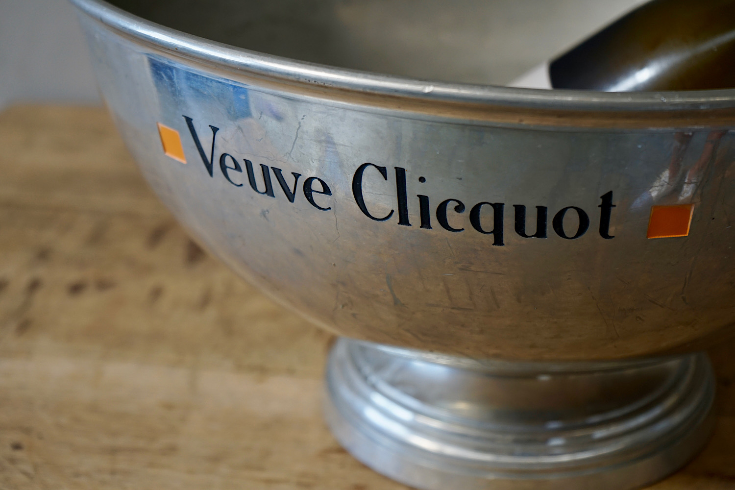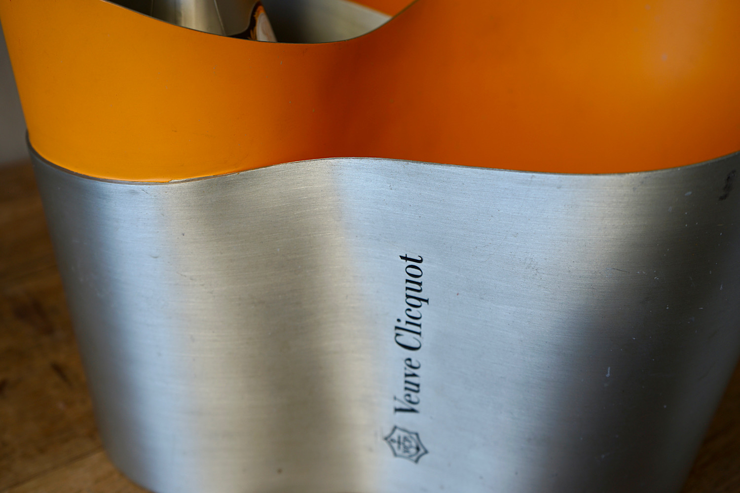 A large pewter Veuve Clicquot champagne bucket in solid pewter with orange interior. The Infinite Wave model, designed by Pablo Reinoso and made by Royal Selangor Pewter. A rare model of very high quality.