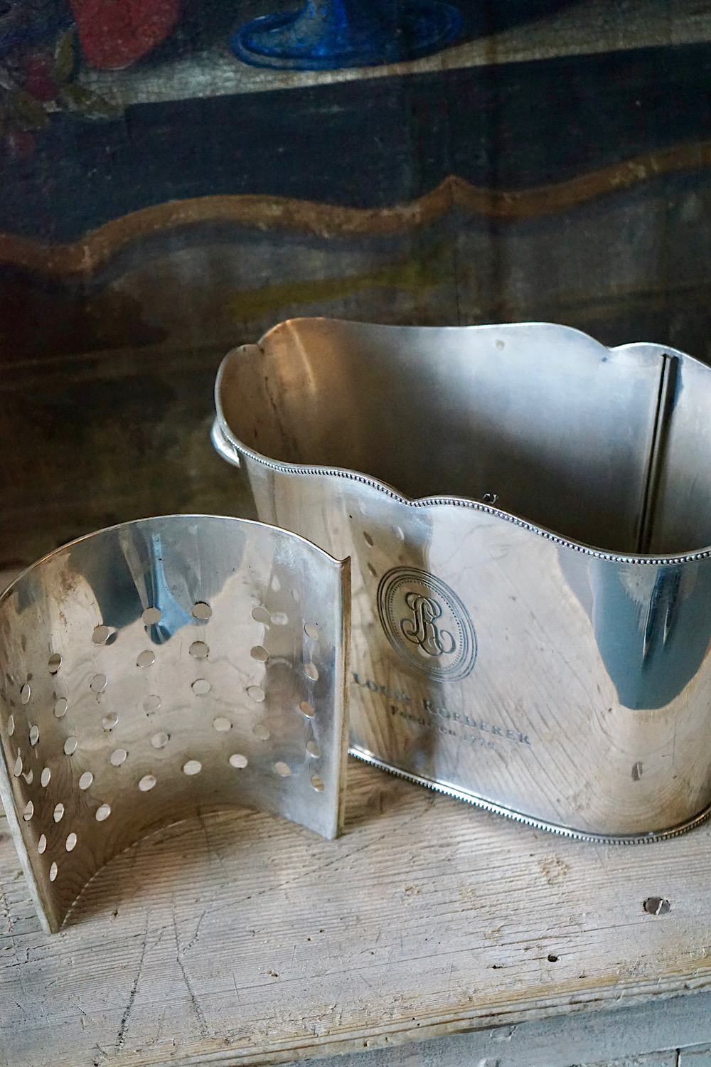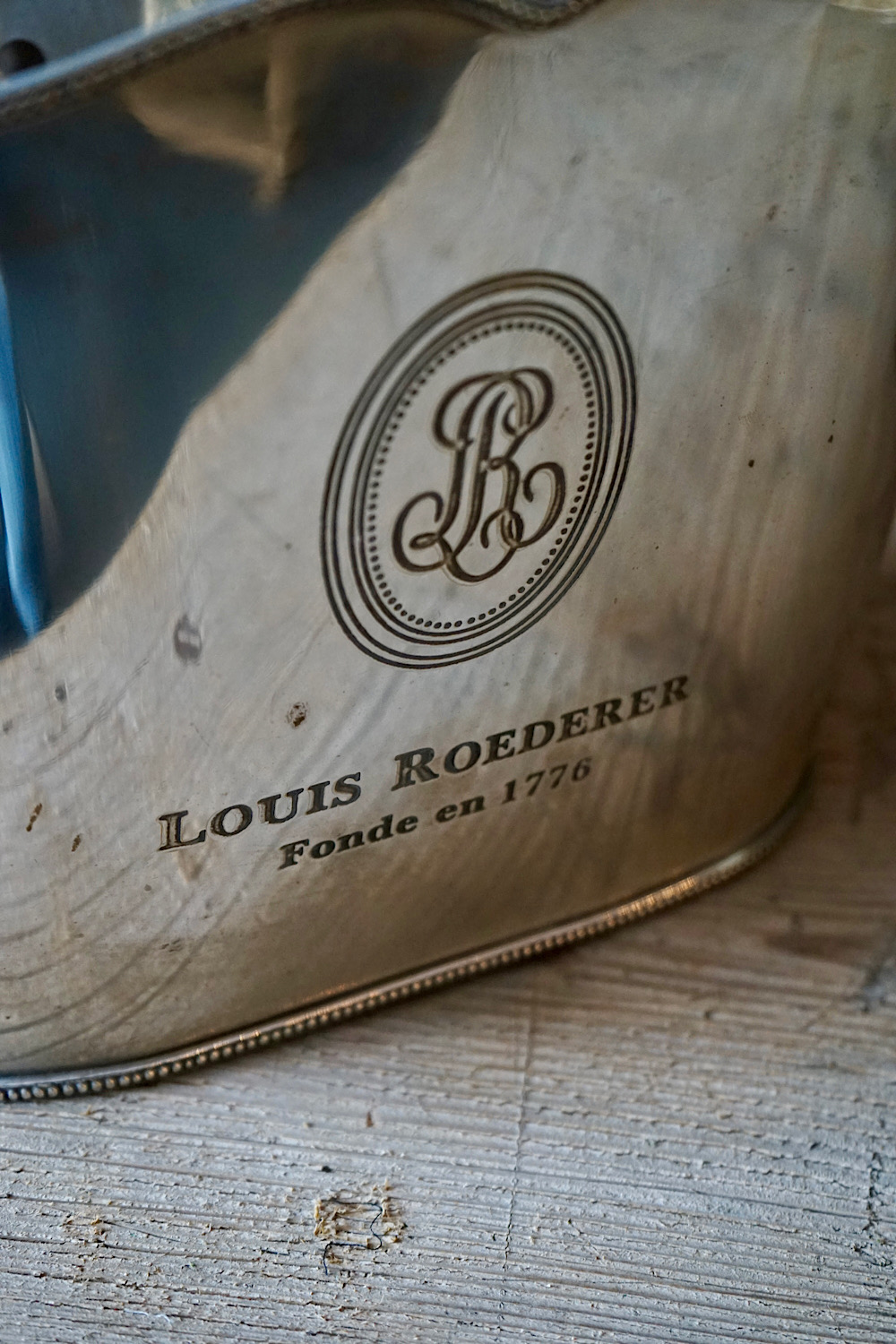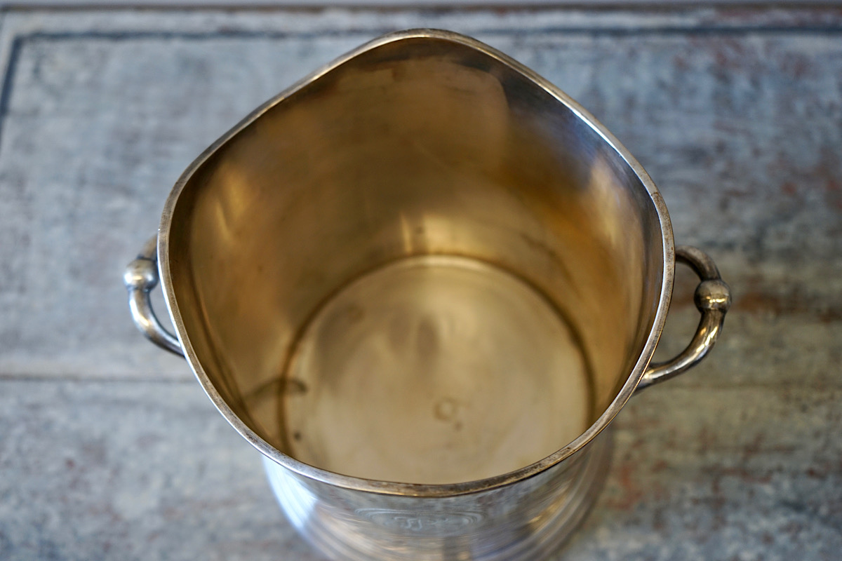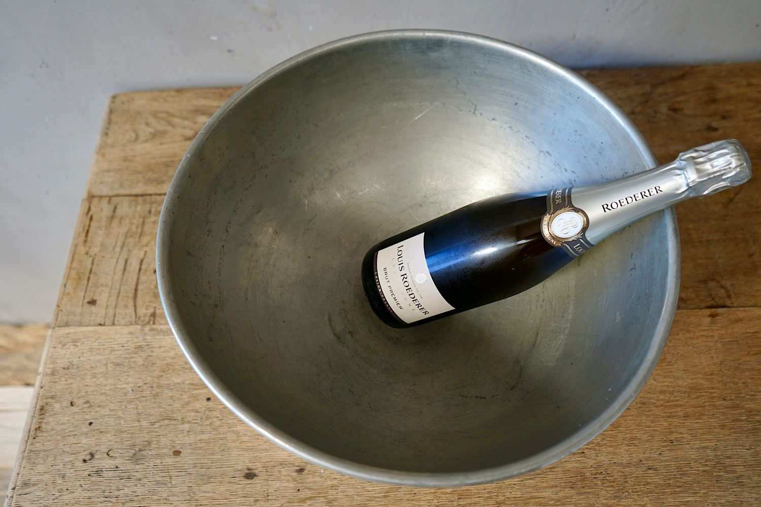 A large pewter Veuve Clicquot champagne bucket in solid pewter with orange interior. The Infinite Wave model, designed by Pablo Reinoso and made by Royal Selangor Pewter. A rare model of very high quality.